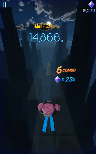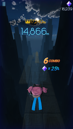 Sky Girls is a thrilling runner game where your girl can run, jump and fly through the sky with exhilarating speed. Your avatar will run faster as you land on the gold rail of each floating platform. Stepping on the gold rail consecutively will reward you with bonus gems at the end of each round. You can collect new Girls with special outfits and abilities through gems and accomplishing achievements.
