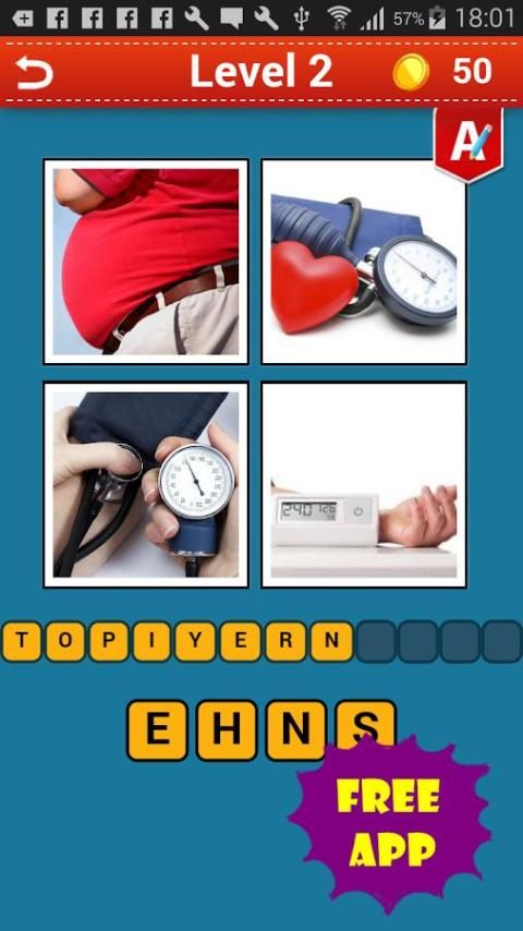 4 Pics 1 Penyakit adalah kata dan gambar permainan di mana Anda harus menebak penyakit atau gejala yang dijelaskan dalam 4 gambar, ini adalah kuis untuk menguji memori Anda dan keterampilan kosakata.