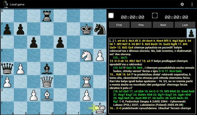 * Permainan mengimpor dan mengekspor dalam standar PGN, basis data game lokal dalam format PGN