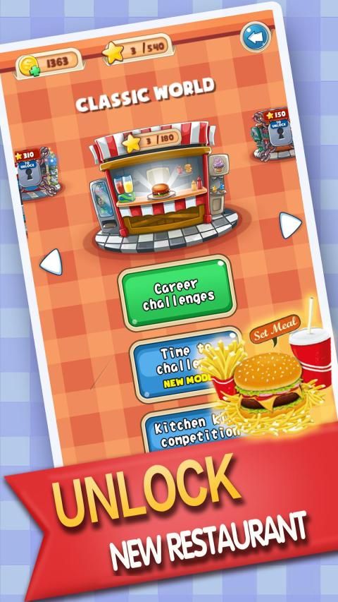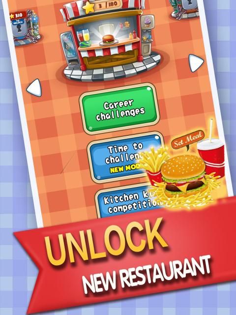 Anda akan membuka kunci item baru di setiap level dan mengalami momen terbaik dalam karier koki.