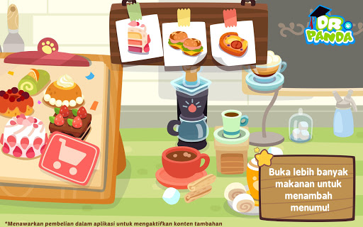 Sambutlah para pelanggan di kafe-mu, catat pesanan mereka, dan buktikan keahlianmu dalam menyiapkan hingga 40 jenis makanan dan minuman! Di Kafe Dr. Panda, kamu akan bersenang-senang memberikan pengalaman kafe yang menarik untuk pelangganmu. Jangan sampai mereka menunggu terlalu lama, pastikan menyajikan pesanan tepat waktu!
