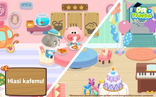 Versi Kafe Dr. Panda ini gratis diunduh, dan mengandung pembelian dalam aplikasi untuk menambahkan lebih banyak makanan dan minuman ke dalam menu, dekorasi, dan lain-lain. Ini adalah pembelian satu kali yang akan mengaktifkan konten untuk akunmu secara permanen. Periksa pengaturan peranti Anda untuk opsi pengawasan orangtua yang lebih terperinci terkait pembelian dalam aplikasi dan hubungi kami di support@drpanda.com jika Anda mempunyai masukan atau kekhawatiran.