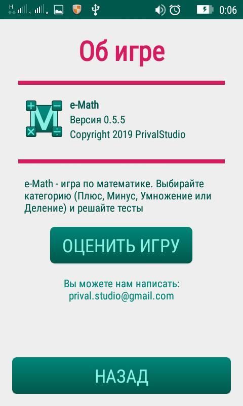 e-Math - это набор математических тестов для тренировки мозга. Выбирайте категорию (Сложение, Разность, Умножение или Деление) и решайте тесты.