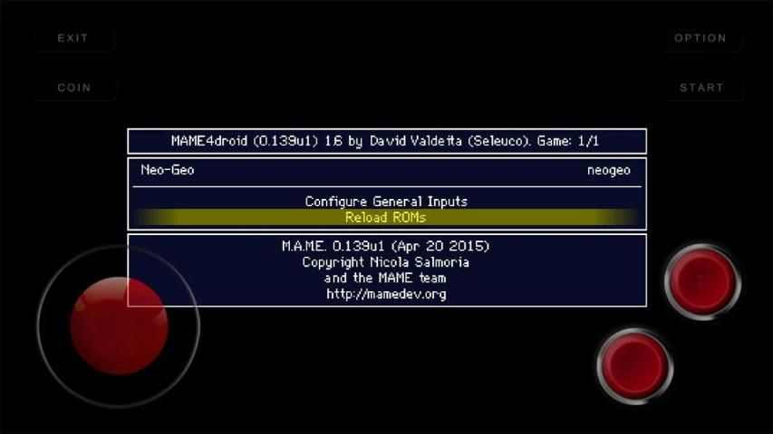 - Buttons START+SELECT simultaneously: Access to the MAME menu.