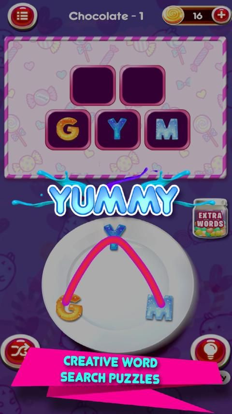 Find words in a simple word scramble game. All you need is to connect the words by simply swiping on letters and unscramble those letters to form a word. Word Candy 2019 is hard to master.