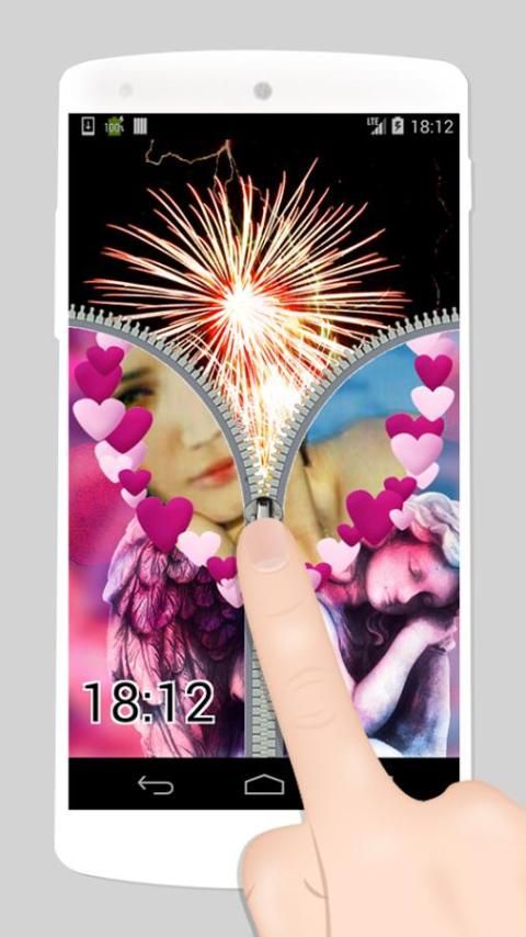 jantung frame kunci zipper foto, pilih foto dari galeri gambar Anda untuk ritsleting layar kunci.