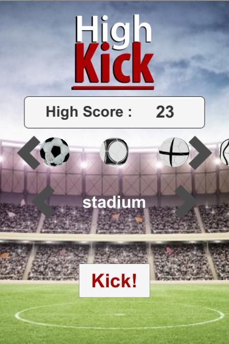 Tendangan tinggi adalah sepak bola realistis 3d atau sepak bola sebagai americain panggilan itu permainan, di mana Anda bersenang-senang juggling bola, sebagai olahraga paling populer di Eropa dan Amerika latin aplikasi ini adalah pelabuhan keajaiban olahraga sepak bola untuk ponsel Anda, dengan menakjubkan grafis, disetel fisika, tujuan sederhana dan skor menggoda untuk istirahat, menikmati olahraga favorit Anda, ketika Anda tidak dapat memiliki pertandingan skala penuh atau menonton liga sepak bola, dengan desain bola ikonik dan stadion menarik Anda tidak akan pernah bosan,
