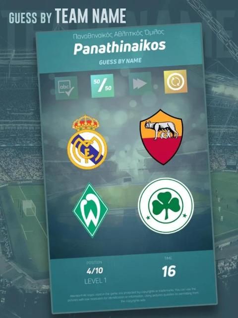 Uji pengetahuan Anda tentang semua klub sepakbola di seluruh dunia dalam logoquiz multi-level.