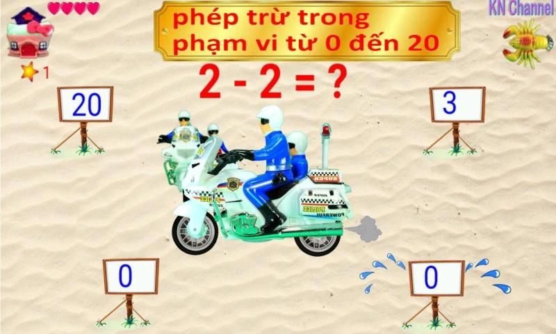 KN Channel Math For Kids Bé Làm Toán là game giáo dục, nâng cao khả năng học toán, tính toán những phép tính cộng trừ đơn giản cho bé từ 2 đến 6 tuổi. Bé sẽ thích thú như đang chơi game chứ không phải bị gò bó vô việc học nên hiệu quả rất cao.