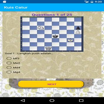 Menguji kemampuan teknik bermain catur langkah terakhir yang memenangkan pertandingan. Ada nilai yang diperoleh sebagai acuan keterampilan anda Soal dibuat mulai dari yang sederhana hingga yang komplek Selamat bermain