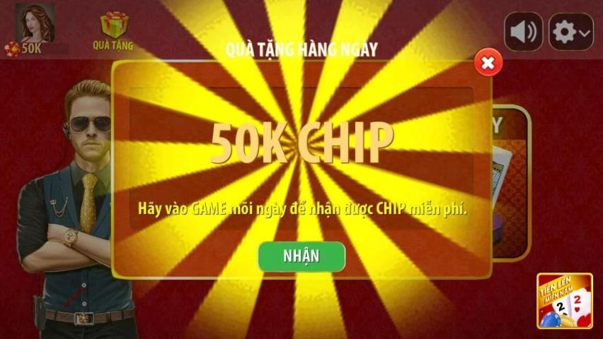- Tiến lên có thêm quà tặng lúc mới vào game, khởi nghiệp vui vẻ.