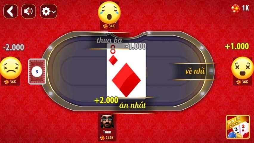 - Có rất nhiều mức cược cho bạn, từ vài K chíp đến vài cả tỉ chíp 1 ván tiến lên, đánh tiến lên mau làm tỉ phú trong game.