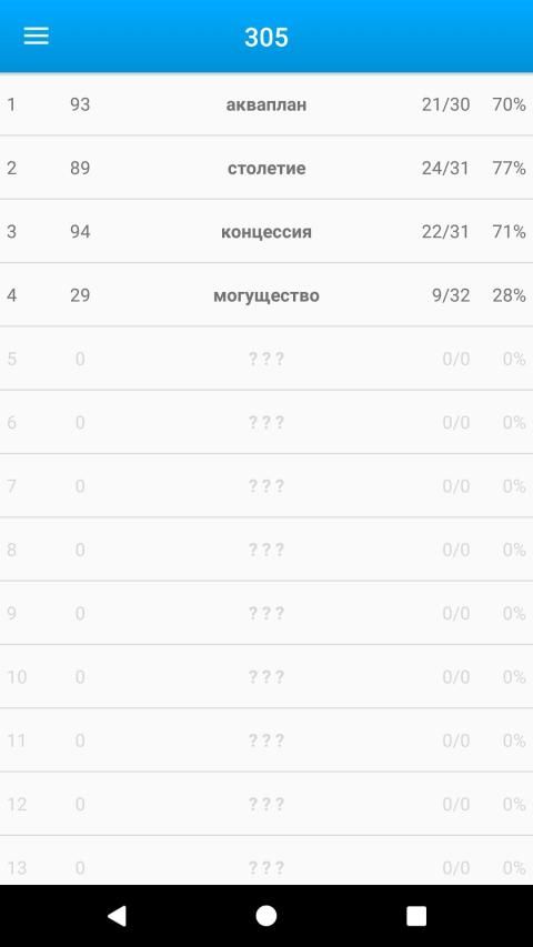 Чтобы открыть следующий уровень, необходимо угадать 70% слов текущего уровня.