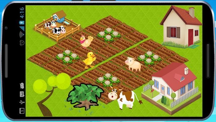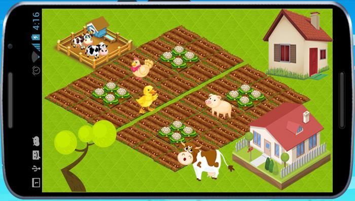 المواشي وتحصل على النقود، رسومات لعبة المزرعة جميلة جدا وجذابة ومريحة للعين والمؤثرات الصوتية توفر جو من المرح والتسلية لجميع الأعمار،