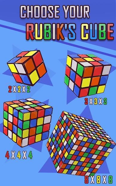 - Choose your own difficulty level: 2x2x2, 3x3x3, 4x4x4, and 8x8x8 Rubik’s Cube;