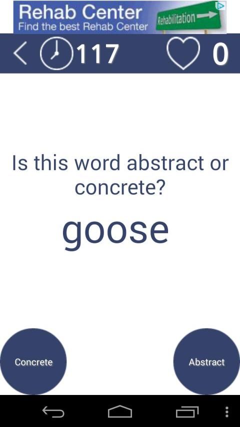 Abstraction - Exercise your ability to quickly differentiate between words with a concrete vs. abstract meaning.