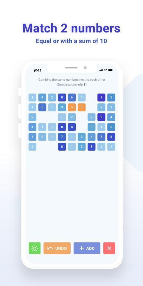 Jumlah kombinasi yang tersisa akan ditampilkan di bagian atas layar. Ketika jumlah kombinasi akan sama dengan 0, tekan plus (+) di bagian bawah layar. Ulangi sampai tidak ada angka yang tersisa.