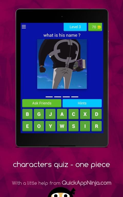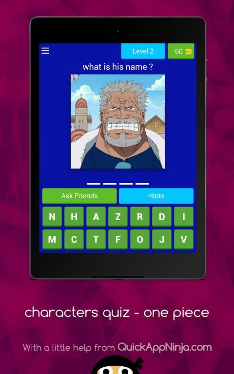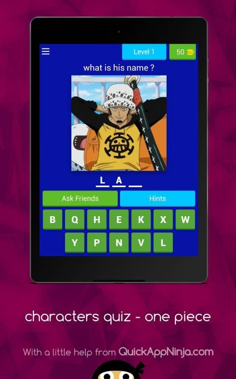 Find most popular android apps here! 20,000+ users downloaded characters quiz - one piece latest version on 9Apps for free every week! When you click, the app will start downloading and wait till it completes installation you can start play. This hot app was released on 2019-12-06. If you still need more information collecting extra factors, read below.