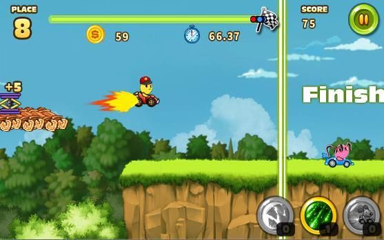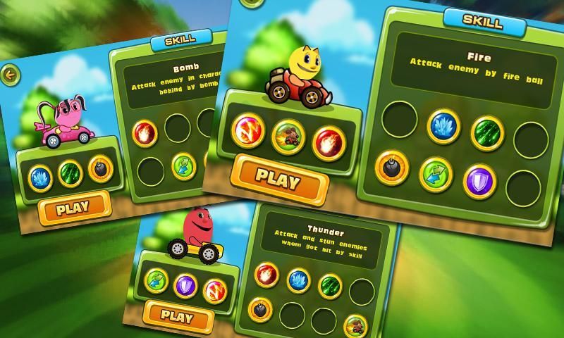 pembalap menunggu bantuan Anda untuk di semua tingkatan di 4 dunia yang berbeda (bawah hutan-gurun-gunung berapi-selatan pole-), Anda harus mengumpulkan lebih banyak koin dan membeli karakter hantu baru atau beberapa power up (untuk contoh turbo untuk meningkatkan kecepatan Anda, Anda juga dapat membekukan musuh dengan es, serangan musuh dengan bola api, setrum rallycrosser lain dengan flash, serangan dan sopir setrum rallycross yang tertabrak oleh keterampilan, driver pac serangan karting belakang oleh bom, posisi swap dengan pereli yang tertabrak keterampilan, membuat perisai untuk memblokir satu serangan dari teman karting lainnya) untuk memenangkan musuh! Anda juga dapat meng-upgrade karakter favorit Anda, dan meningkatkan kecepatan dan kekuatan untuk sangat tingkat dan memenangkan mudah reli.