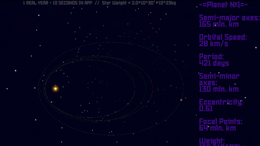The main objective of this program is the calculation of the orbit and the motion of the planet around the star with use of weight,
