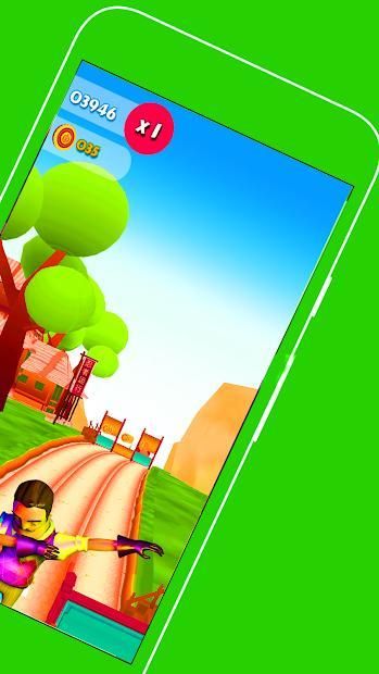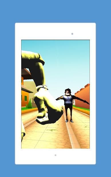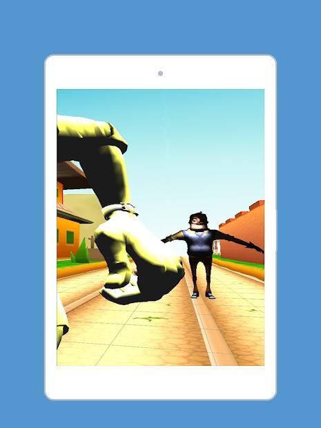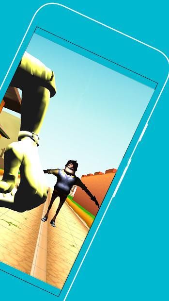 he will try to catch you . during escape to save your life, you will be facing more exhilarating obstacle . you can be running ,surfing ,sliding