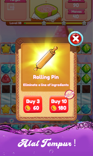 Rencanakan gerakan Anda dengan mencocokkan 3 permen atau lebih berturut-turut, menggunakan booster dengan bijak untuk mengatasi teka-teki ekstra seru! Hancurkan permen dan kumpulkan permen manis melintasi ratusan level, dijamin membuat Anda lebih ketagihan!
