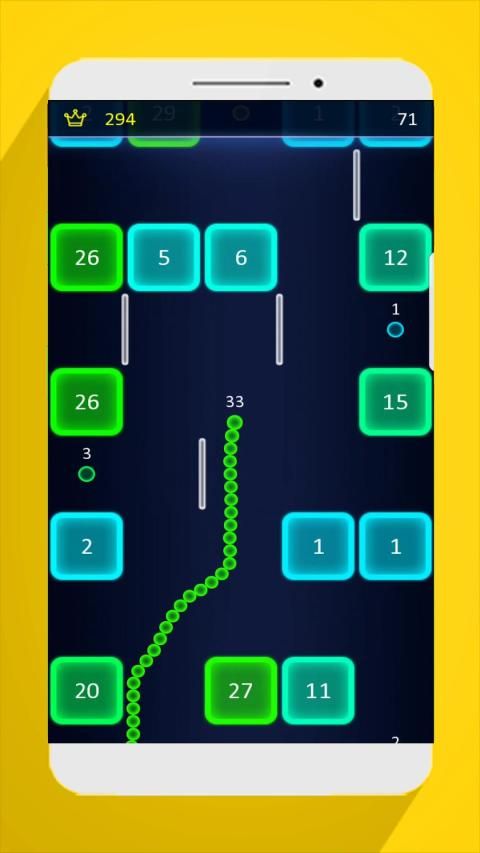 nice of game snake blocks is to collect as much food as you can to make your snake grow, while you explode the load blocks blocking your way. Every time you hit a block, you lose part of your snake. Try to avoid all traps your way