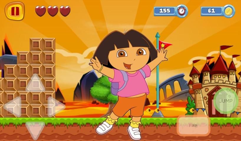 Ini adalah berjalan bebas dan melompat permainan di mana dora memiliki misi Kumpulkan koin, menghindari rintangan yang berbeda untuk menyelesaikan semua tingkatan, adalah permainan gratis dengan adiktif dan menggembirakan arcade game.