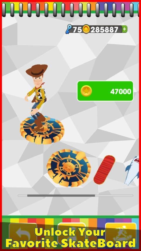 toko mainan surfer menawarkan banyak barang bagus untuk meningkatkan kinerja Anda. Dapatkan bonus untuk meningkatkan kekuatan Anda, termasuk magnet dan sepatu bot. Juga tingkatkan jetpack Anda dan dapatkan penerbangan hebat untuk mengumpulkan banyak koin. Anda juga dapat membeli piring untuk selamat dari guncangan, ketika Anda menabrak bus atau truk!