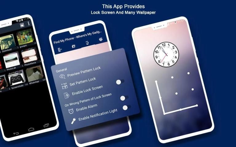 This Gallery Protection feature will help you to secure your gallery items, gallery photos, gallery videos and your personal and family gallery items. You just enable this Gallery Protection alarm and gallery notification light. If someone picked your phone and enters into the gallery, this app will start the alarm and notification light and you can notice and bring back the phone. This is free app and you can lock some specific apps and open other apps for all users of your device. In this way you can protect your security data from unauthorized persons like family and friends. This app will enhance the privacy of your phone. Download this wonderful app and secure the usage and get notified. Enable the Pattern lock screen in lock screen tab. This lock screen will lock all the apps and data; you can set your pattern password to unlock the screen. This advanced pattern lock screen app is free if you are looking for perfect security app for your phone and you worried about a friend borrowing your phone to play games, use apps and can see the Gallery Photos and Videos. Lock phone using this pattern advance screen lock & secure your phone data. Another security & notification feature, if someone tries to enter the wrong pattern to unlock your phone screen, can also enable the alarm and notification light