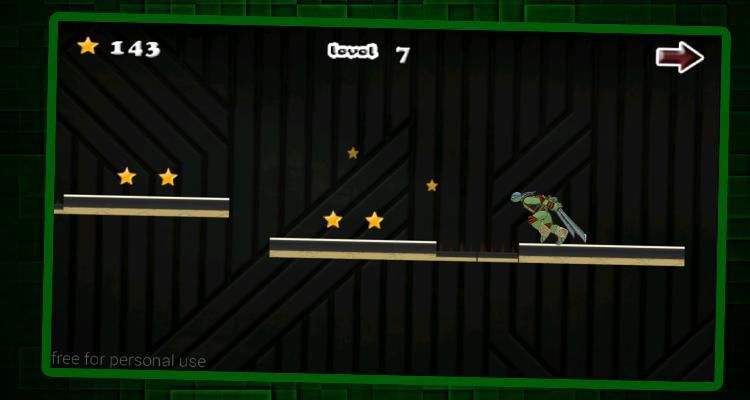 penyu jumber Ninja Petualangan mudah untuk bermain, Anda dapat memberikannya kepada anak-anak Anda dan Anda dapat memainkannya terlalu .suatu hal yang paling penting adalah untuk membantu penyu jumber Ninja, super hero ini untuk mengumpulkan uang dan menemukan emas yang hilang. Dalam dunia yang penuh petualangan, Anda harus memastikan, Anda berlari dan melompat dengan benar, bahwa Anda tidak berjalan di paku dan tidak memukul hambatan dan tidak berhenti atau musuh akan membuat Anda. Gunakan halus, bergerak mudah Anda untuk membimbing Ninja kami pada petualangan. Ini "empat puluh nuansa o 'menyenangkan".