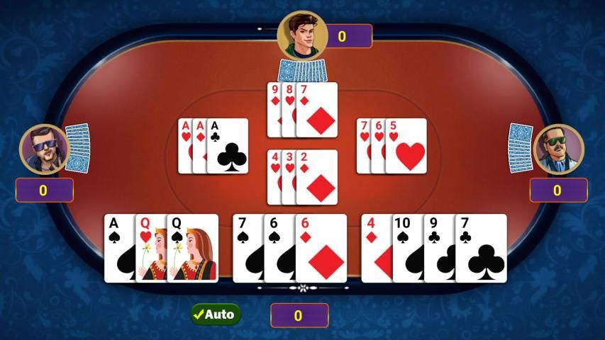 হাত এর শক্তি : তিনপাত্তি বা অন্য তিনকার্ড গেইমের মতো : ট্রয় > কালার রান > রান > কালার > পেয়ার > সিঙ্গেল