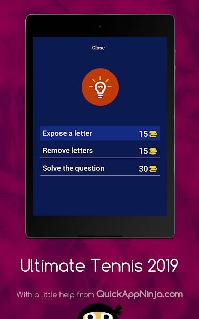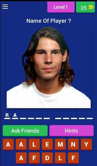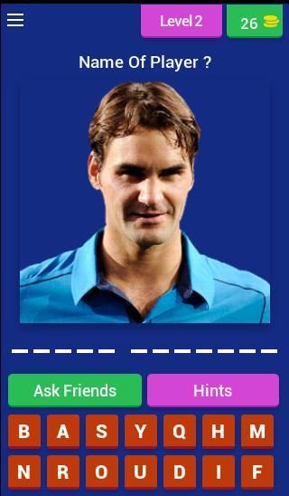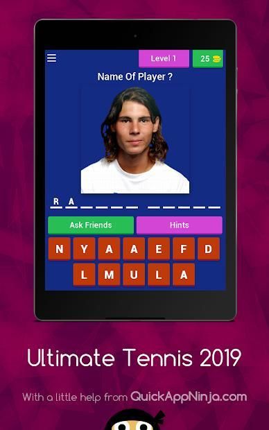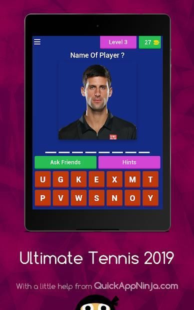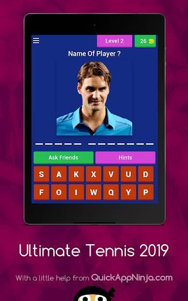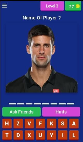 The Principe of this game is using pictures to the guess the name of tennis player ultimate tennis 2019