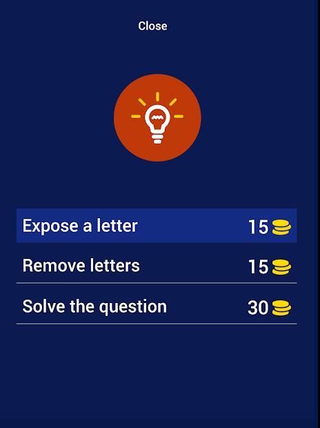 * Anda memiliki petunjuk sebagai kredit untuk mendapatkan petunjuk bahkan menjawab pertanyaan itu. * Setiap Anda lulus tingkat, Anda akan mendapatkan lebih banyak koin.
