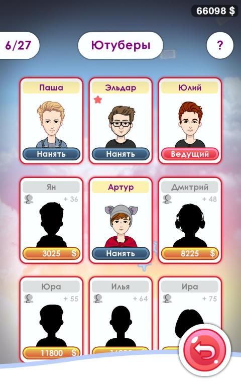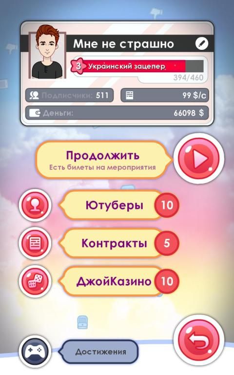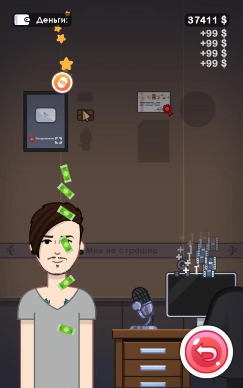 - Подписывай контракты, нанимай Ютуберов, посещай мероприятия и обустраивай комнату!