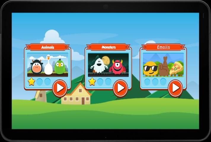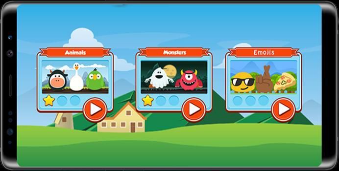 -Три вида картинок(Животные),(Монстры),(Emojis).