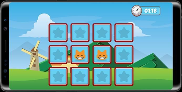 Permainan memberi Anda serangkaian kartu dengan gambar tertentu di bagian belakang. Setiap gambar memiliki pasangannya pada kartu yang berbeda. Tetapi Anda hanya dapat membuka 2 kartu pada saat yang sama dan mereka akan tetap terbuka selama beberapa detik.