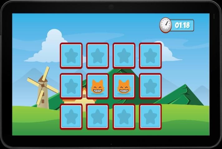 Цель каждого раунда игры состоит в том, чтобы открыть все карточки со скрытыми изображениями в течение определенного периода времени.