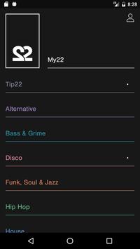 The fastest way to discover new music, just one tap away. Save your favourite findings in a My22 playlist which is directly synched with your Spotify account.