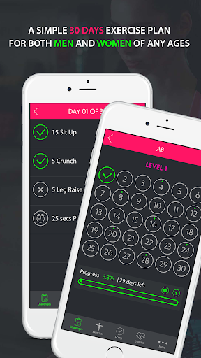 ► The 30 Day Fitness Full Body Challenges is a simple 30 day exercise plan, where you do a set number of exercises each day with rest days thrown in! The workout increases intensity slowly and day 30 will test anyone. The app is suitable for both men and women of any ages.