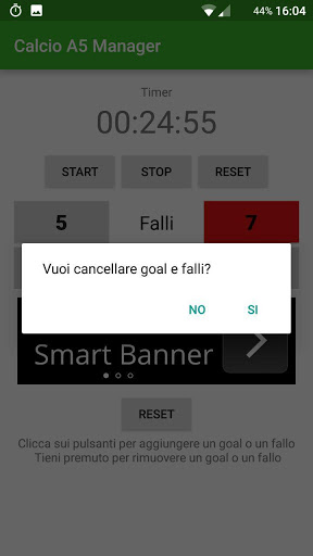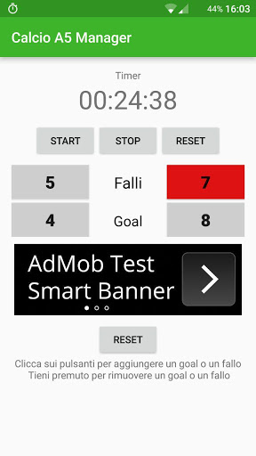 Eseguendo un breve click sul numero di falli o di goal quest'ultimi aumenteranno di uno, mentre facendo un pressione prolungata diminuiranno di uno.