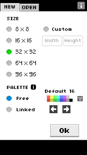 - Palette linkata al progetto fino a 16 colori oppure modalità libera