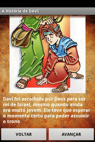 A História de Davi para crianças, é um aplicativo com ilustrações que conta parte da vida do rei Davi em uma linguagem que seus filhos compreenderão.
