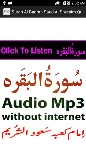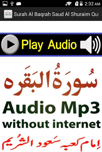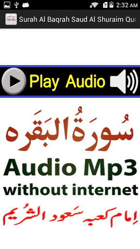 Questa è la migliore app di Surah Baqarah in SHURAIM Voice che gioca Audio MP3 Tilawat senza internet.