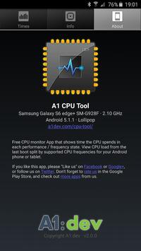 A1 CPU Tool - free CPU monitor App that shows time the CPU spends in each performance / frequency state. View CPU load from the last boot split by supported CPU frequencies for your Android phone or tablet. Displays time spent in the Deep Sleep, and ultra low frequencies.