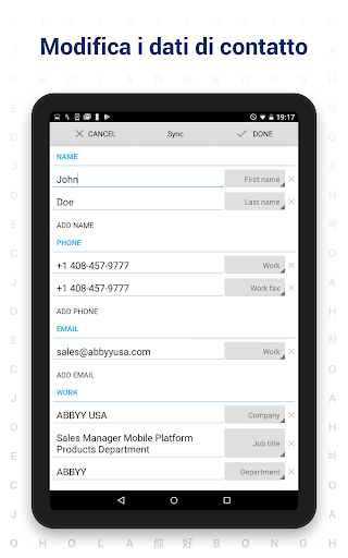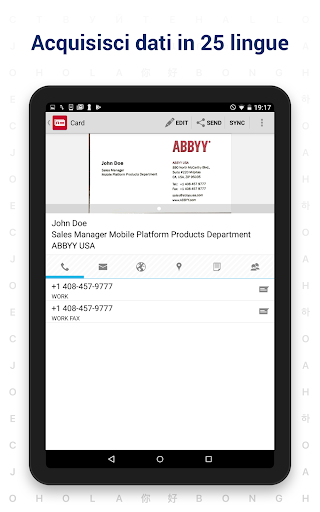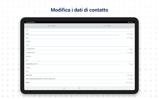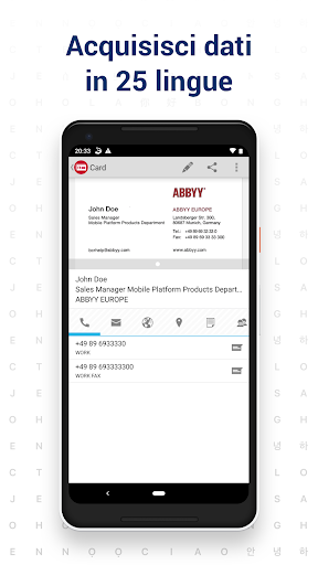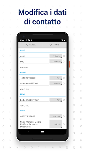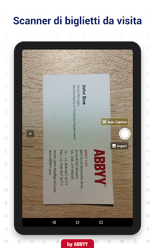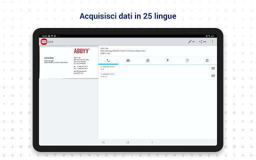 ✓ Basta col faticoso inserimento dei contatti nell smartphone - Qualità e velocità insuperabili di riconoscimento del testo, grazie all’eccellente tecnologia ABBYY Mobile OCR.