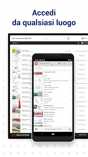 ✓ Sincronizzazione tra smartphone, tablet e computer per rendere i database di biglietti da visita senza problemi, aggiornati e accessibili da tutti i dispositivi su ABBYYBCR.COM.