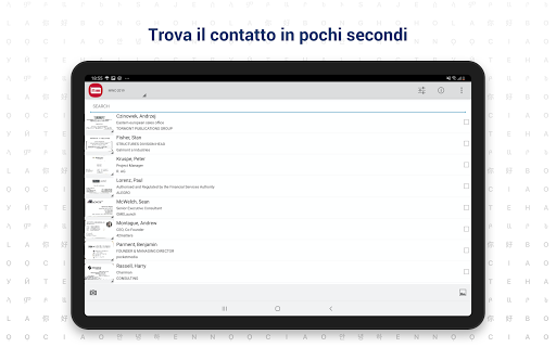 ✓ Condivisione istantanea dei contatti – I biglietti da visita riconosciuti possono essere inviati in modo rapido e semplice via e-mail o SMS nel formato più conveniente: testo, immagine o *.vcf.
