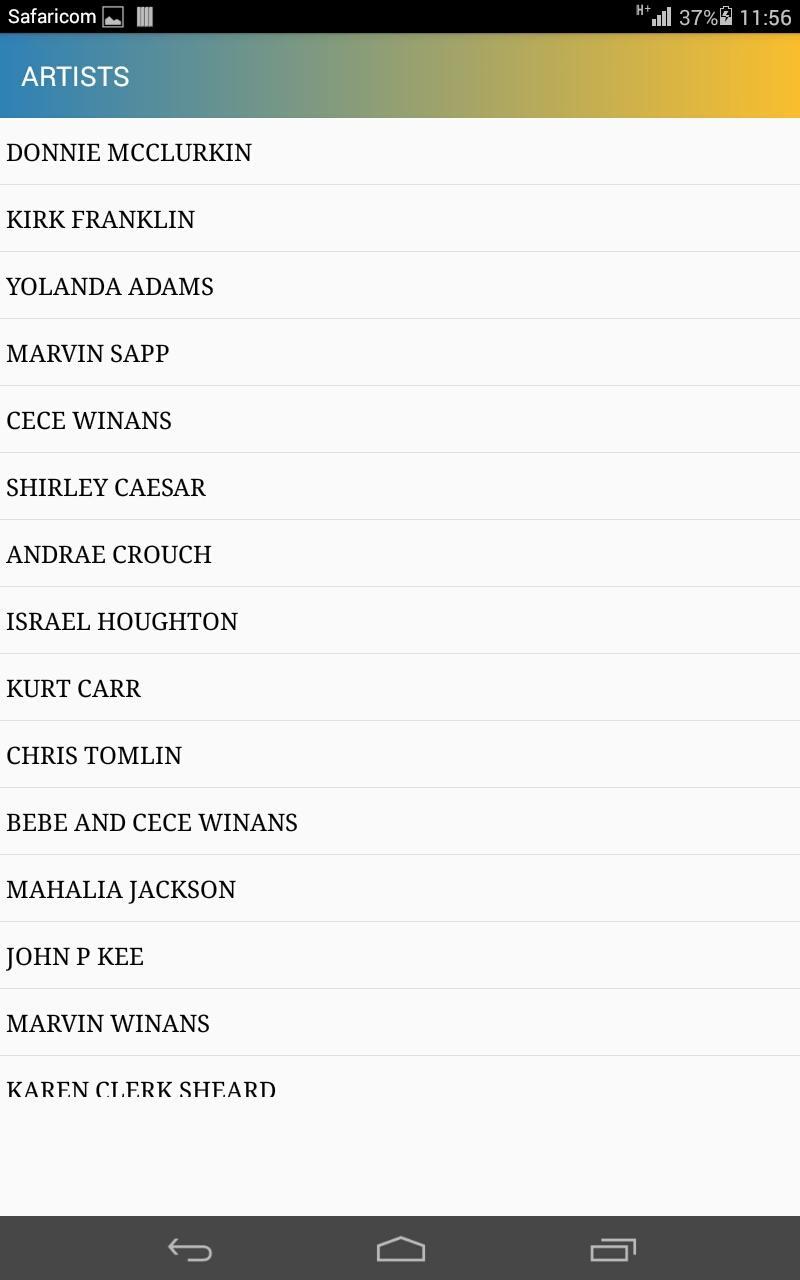 DONNIE MCCLURKIN KIRK FRANKLIN YOLANDA ADAMS MARVIN SAPP CECE WINANS SHIRLEY CAESAR ANDRAE CROUCH ISRAEL HOUGHTON KURT CARR CHRIS TOMLIN BEBE AND CECE WINANS MAHALIA JACKSON JOHN P KEE MARVIN WINANS KAREN CLERK SHEARD DEITRICK HADDON DONALD LAWRENCE KIM BURRELL YOUTHFUL PRAISE LECRAE DOTTIE PEOPLES TWINKIE CLARK ALBERTINA WALKER RON KENOLY JIDENNA DAVID PHELPS BLIND BOYS OF ALABAMA DARYL COLEY SANDI PATTY CRABB FAMILY DON MOEN Mahalia Jackson Jeff Beck MARVIN GAYE ELVIS PRESLEY SAM COOKE ARETHA FRANKLIN TASHA COBBS WOMEN OF FAITH DECLAN BRA MICHA STAMPLY SPIRIT OF PRAISE CHRIS BROWN DESIIGNER TAYLOR SWIFT NICKI MINAJ KATY PERRY EMINEM MILEY CYRUS RIHANNA JUSTIN TIMBERLAKE CHRIS DAUGHTRY SELENA GOMEZ BIG SEAN MARIAH CAREY JASON DERULO JASON MRAZ WIZ KHALIFA AKON LIL WAYNE JHENE AIKO MEGHAN TRAINOR KELLY CLARKSON JOHN LEGEND CHRISTINA PERRI MEEK MILL MIKE POSNER TATIANA MANAOIS KEVIN GATES THE CHAINSMOKERS KENDRICK LAMAR MIGOS THE WEEKND FUTURE MAROON 5 DJ KHALED POST MALONE IMAGINE DRAGONS RAE SREMMURD YO GOTTI AYO & TEO GUCCI MANE BRUNO MARS KODAK BLACK WILL I AM RICK ROSS FAT JOE LUIS FONSI DADDY YANKEE THE CHAINSMOKERS BEYONCE JIDENNA BIG SHAQ ROTIMI CARDI B JENNIFER LOPEZ DEMI LOVATO