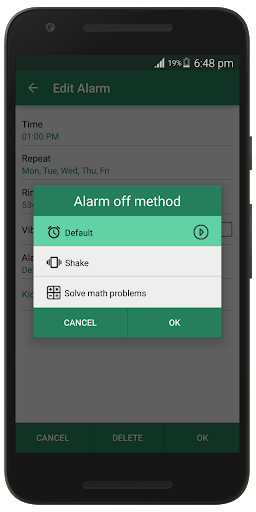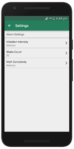 - SHAKE Alarm (You will have to shake phone to dismiss)